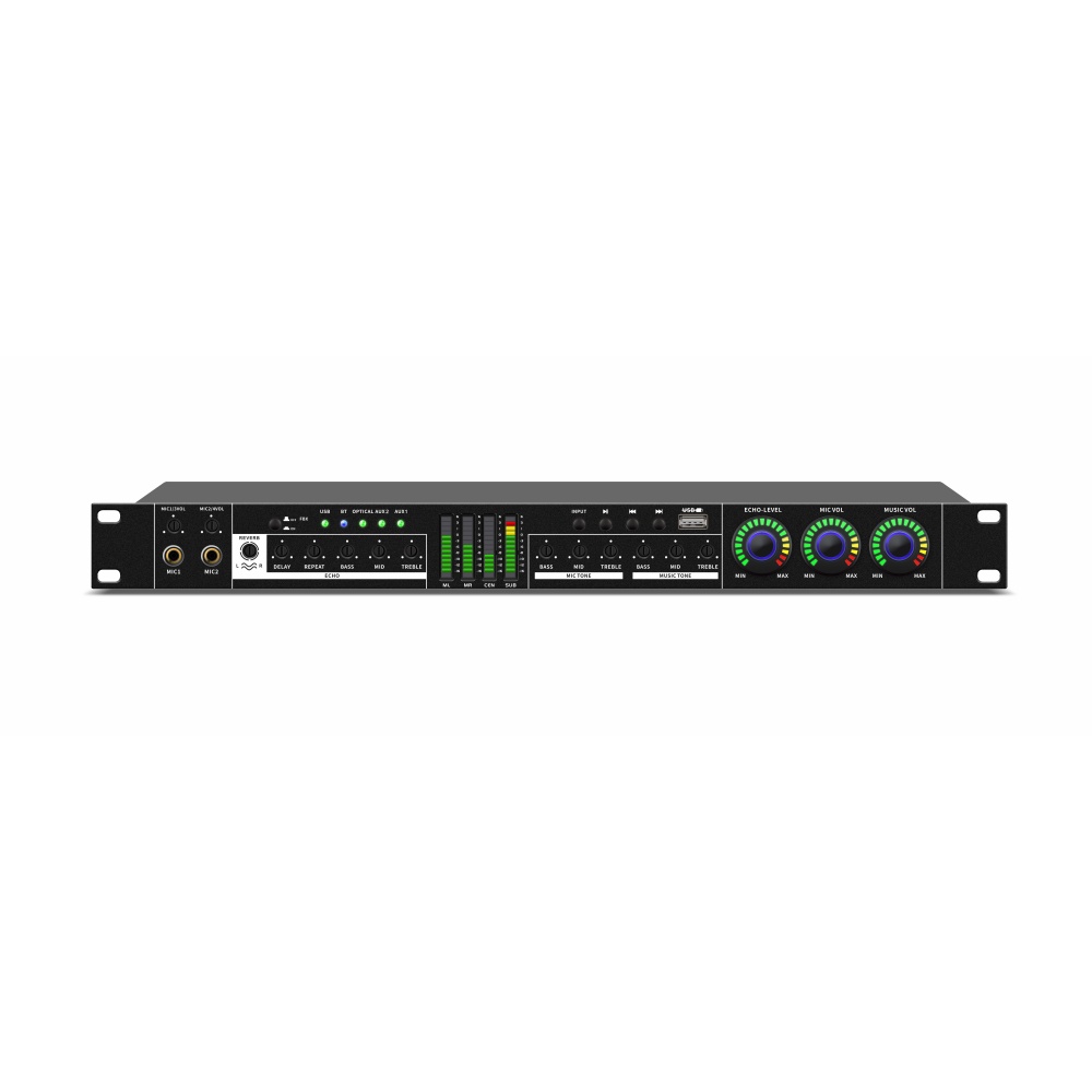 ◎ Bộ tiền khuếch đại chuyên nghiệp này sử dụng chế độ xử lý hồi âm kép, mang lại giọng hát phong phú hơn, tự nhiên hơn và rõ ràng hơn. Nó mang lại âm thanh nổi có độ trung thực cao, mượt mà, tự nhiên và ngọt ngào với hồi âm kép và các hiệu ứng karaoke đa năng. Đầu ra bao gồm các kênh trái và phải phía trước (phía sau), một kênh trung tâm và các kênh phụ. Hơn nữa, nó đơn giản và tiện lợi khi sử dụng như một bộ khuếch đại karaoke.